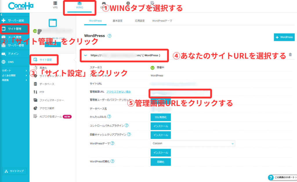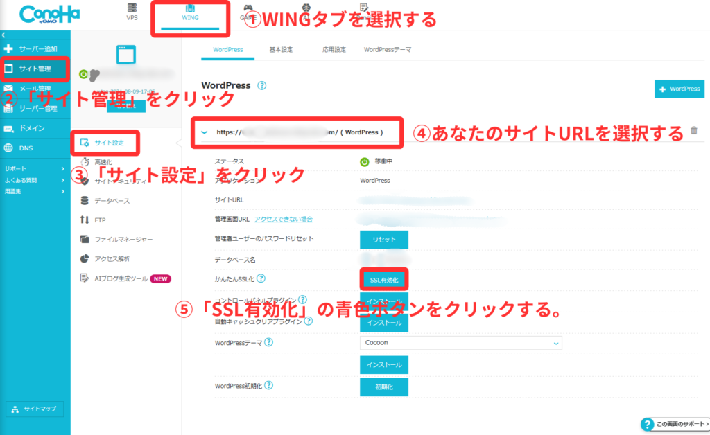 この問題は、ConoHa WINGの管理画面で解決できます。