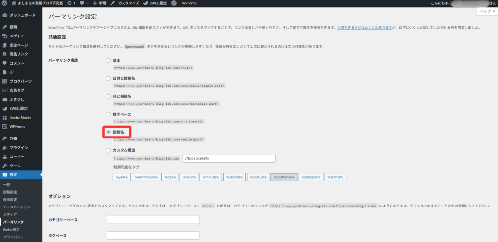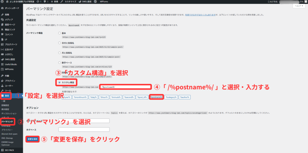 • WordPressログイン後、まず「パーマリンク設定」を行う