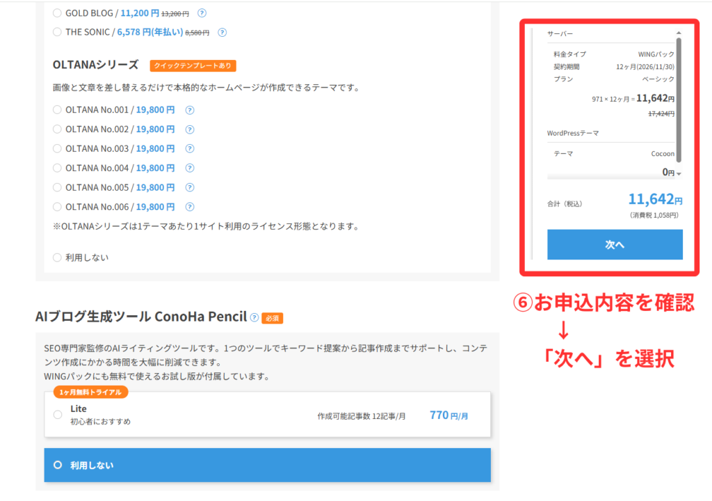 最後に、お申込内容を確認したら「次へ」を選択します。