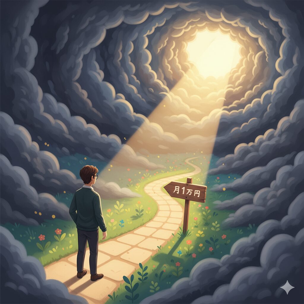 - 最初の目標は月1万円、期間は半年から1年が目安である