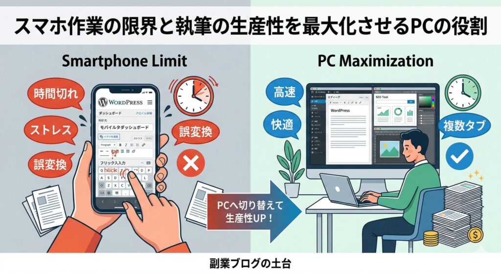 スマホ作業の限界と執筆の生産性を最大化させるPCの役割