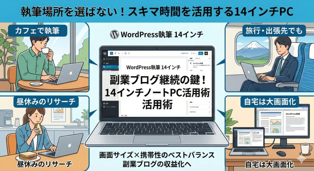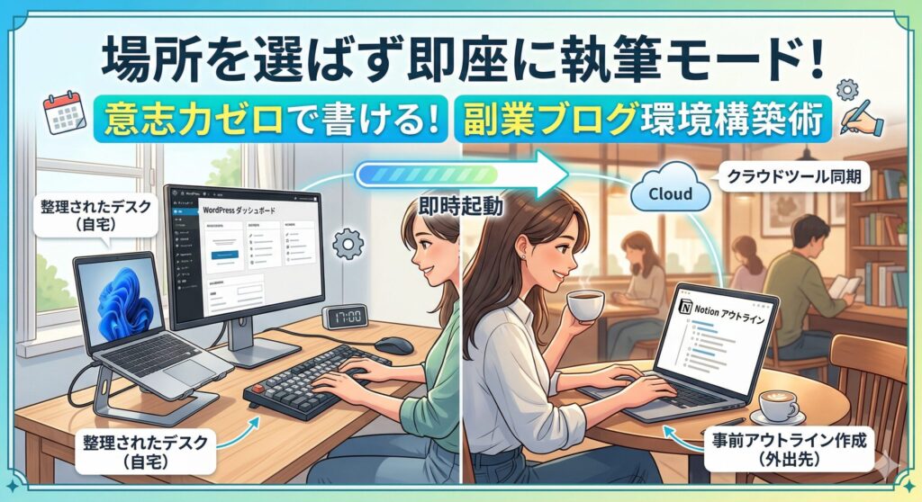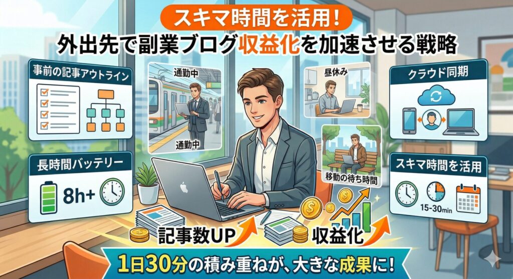 継続こそが副業ブログの収益化に直結するため、持ち運べる環境を持つことは大きなアドバンテージになります。