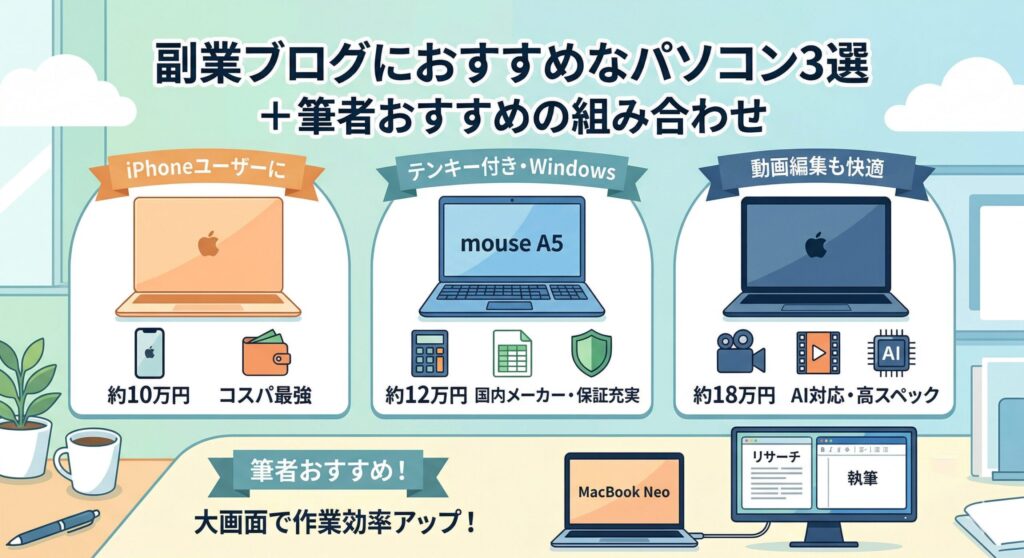 副業ブログにおすすめなパソコン3選と筆者おすすめの組み合わせ