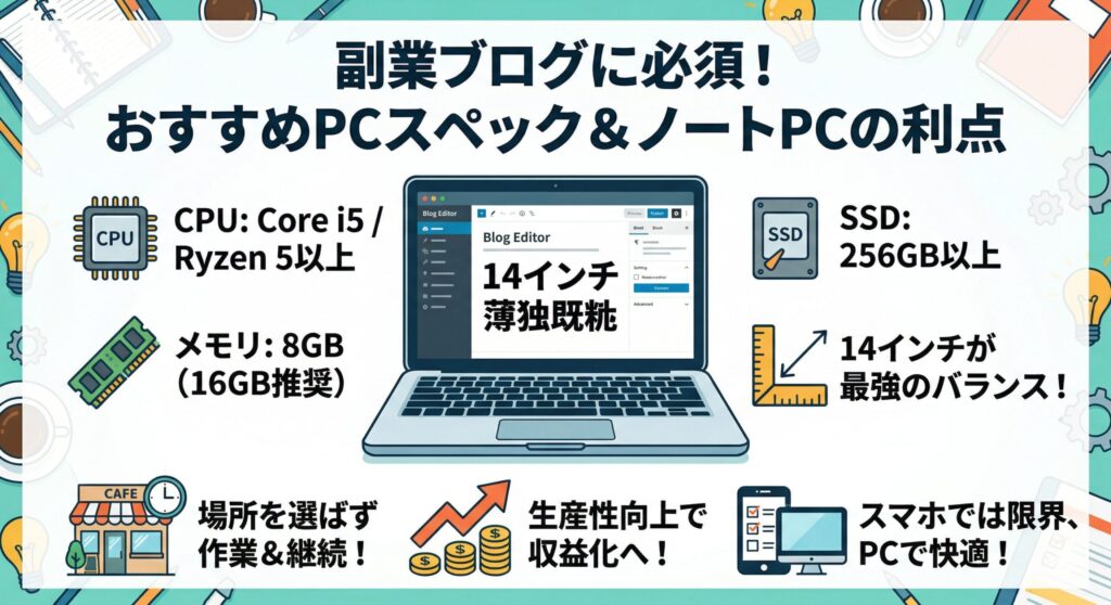 まずは、ブログ運営に必要なスペックとノートPCが選ばれる理由を整理しましょう。